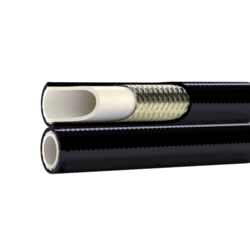 خرطوم هيدروليكي حراري بلاستيكي من ماركة اكسون AKSWON، طراز SAE100R7/EN855 R7، خطان مزدوجان، عالي الضغط، خرطوم مرن التركيب: يتكون هذا الخرطوم من أنبوب داخلي حراري بلاستيكي مقاوم للسوائل الهيدروليكية، مدعم بألياف صناعية، وغطاء خارجي حراري بلاستيكي مقاوم للعوامل الجوية. الأنبوب الداخلي: أنبوب بولي أميد (PA) حراري بلاستيكي مقاوم للزيوت، بدون لحام. التدعيم: طبقة واحدة أو طبقتان من الألياف الصناعية المضفرة عالية الشد. الغطاء الخارجي: بولي يوريثان أسود عالي المقاومة للتآكل. الاستخدام: أنظمة هيدروليكية وهوائية متوسطة الضغط. يفي بمتطلبات SAE 100R7 أو يتجاوزها. بالنسبة للأنظمة الهوائية أو الغازية، يُنصح باستخدام خرطوم مثقب. لا يتفاعل مع الأحماض والسوائل المستخدمة في آلات الصباغة والرغوة. نطاق درجة الحرارة: من -40 درجة مئوية (-104 فهرنهايت) إلى +100 درجة مئوية (+212 فهرنهايت). الأحجام من 1/4 بوصة إلى 1/2 بوصة.